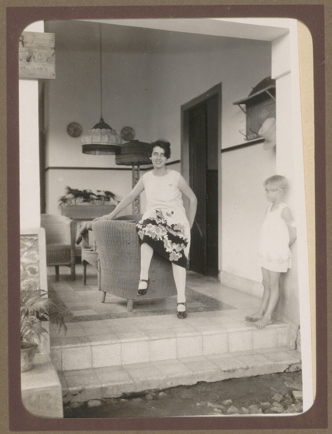 Europese vrouw en meisje op een veranda