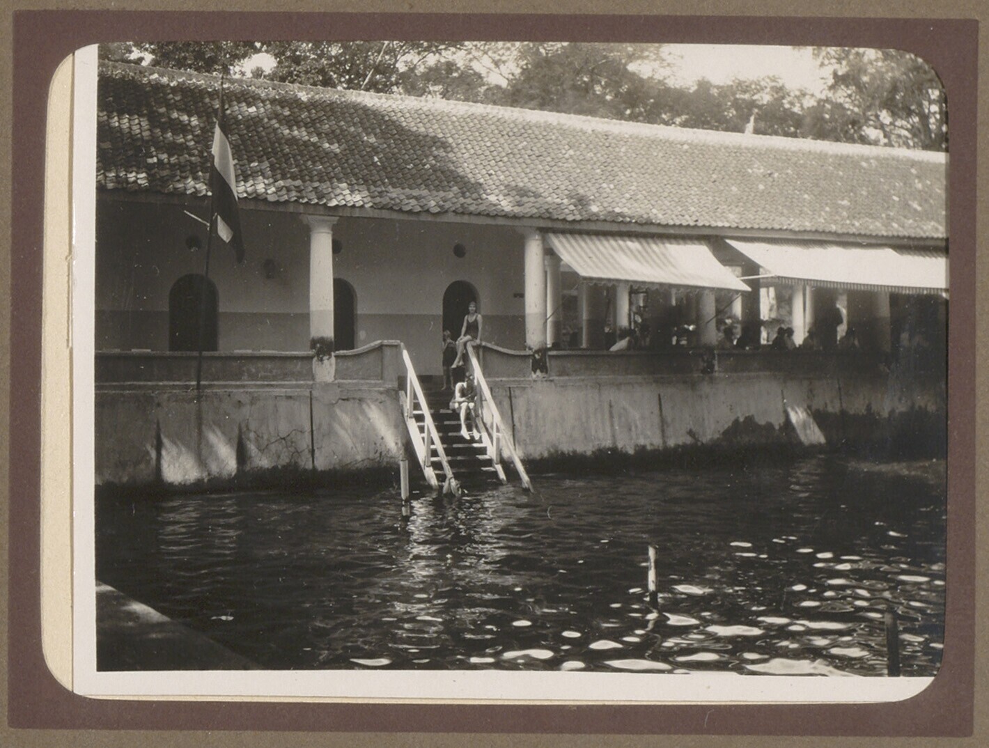 Zwembad met trapje en zuilengallerij