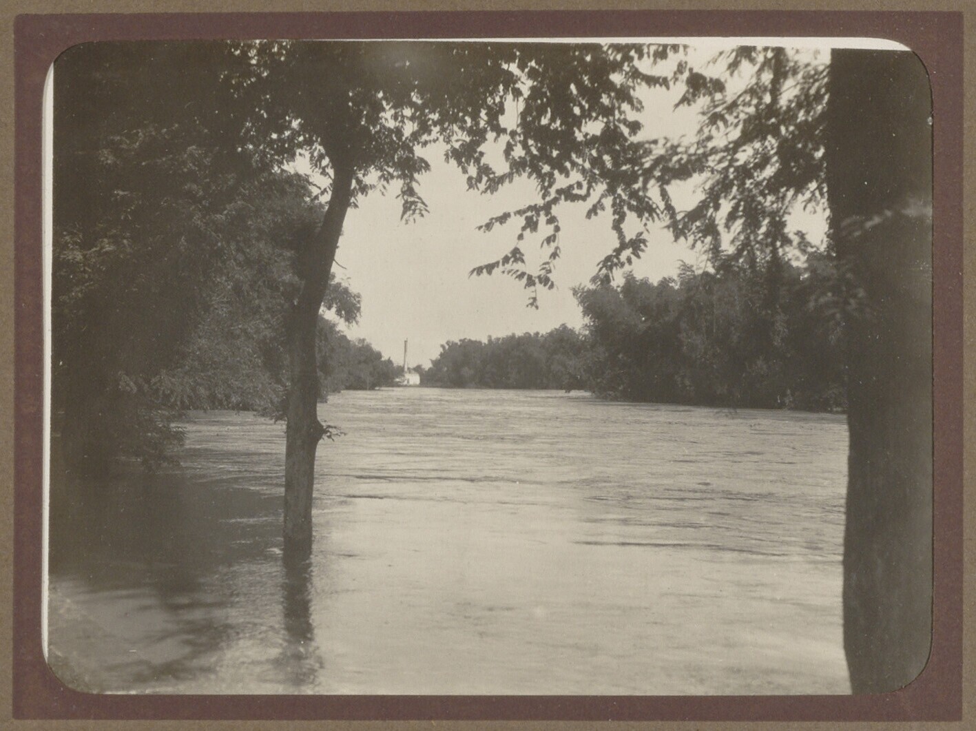 Hoogwater in een dorp met sluis