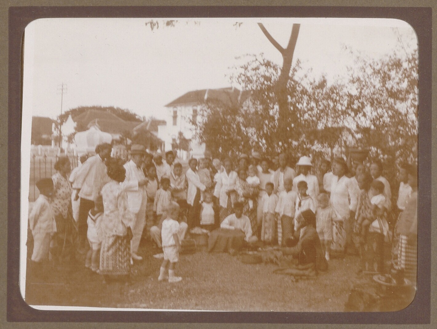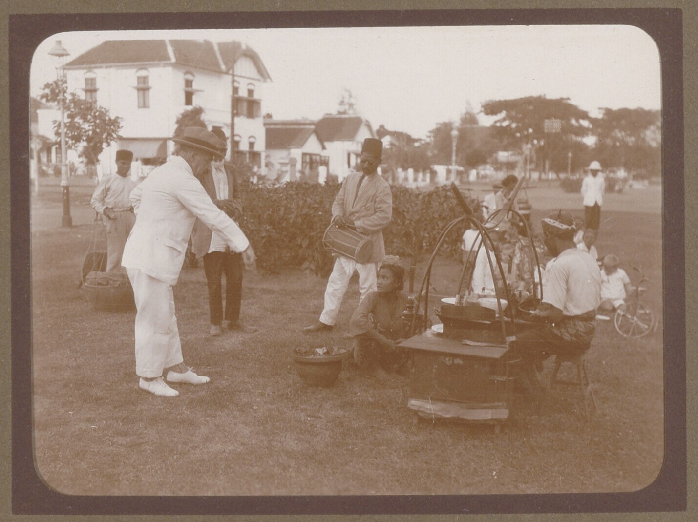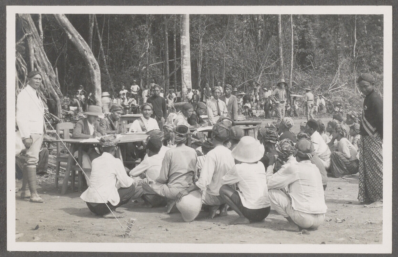 Javaanse artiesten en publiek waaronder Europese man...