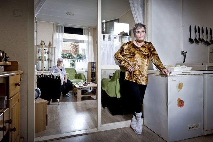 Loes van Dijk en haar moeder in haar woning in de Ro...
