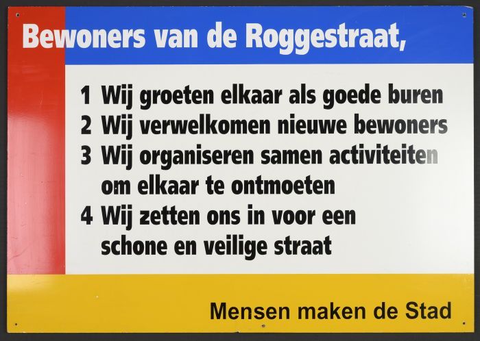 Rechthoekig bord met omgangsregels, zogenaamd 'groet...
