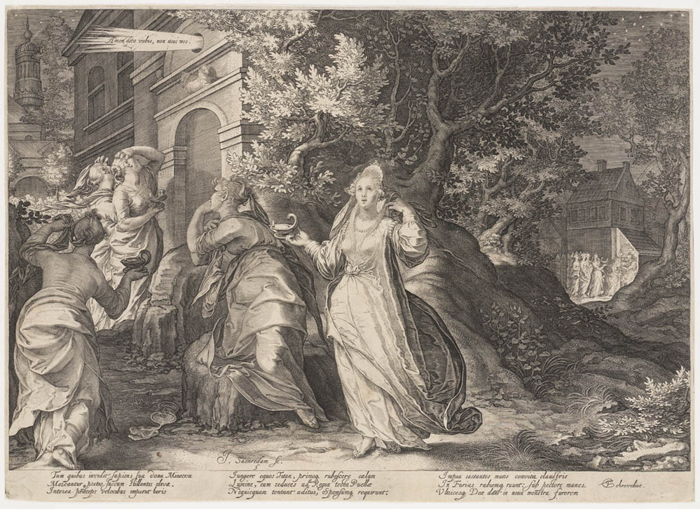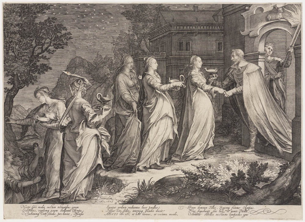 De wijze maagden ontvangen door de bruidegom
