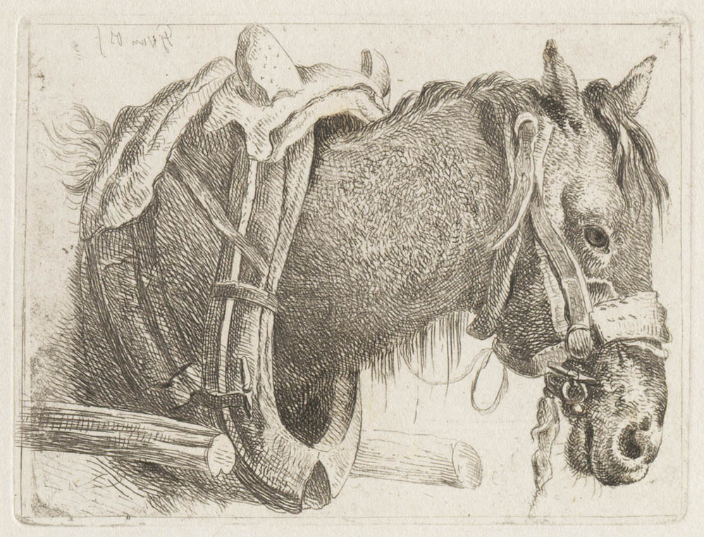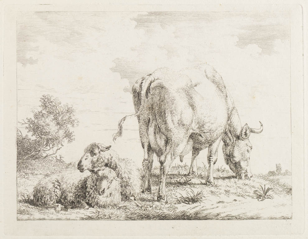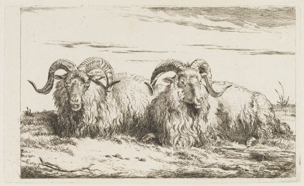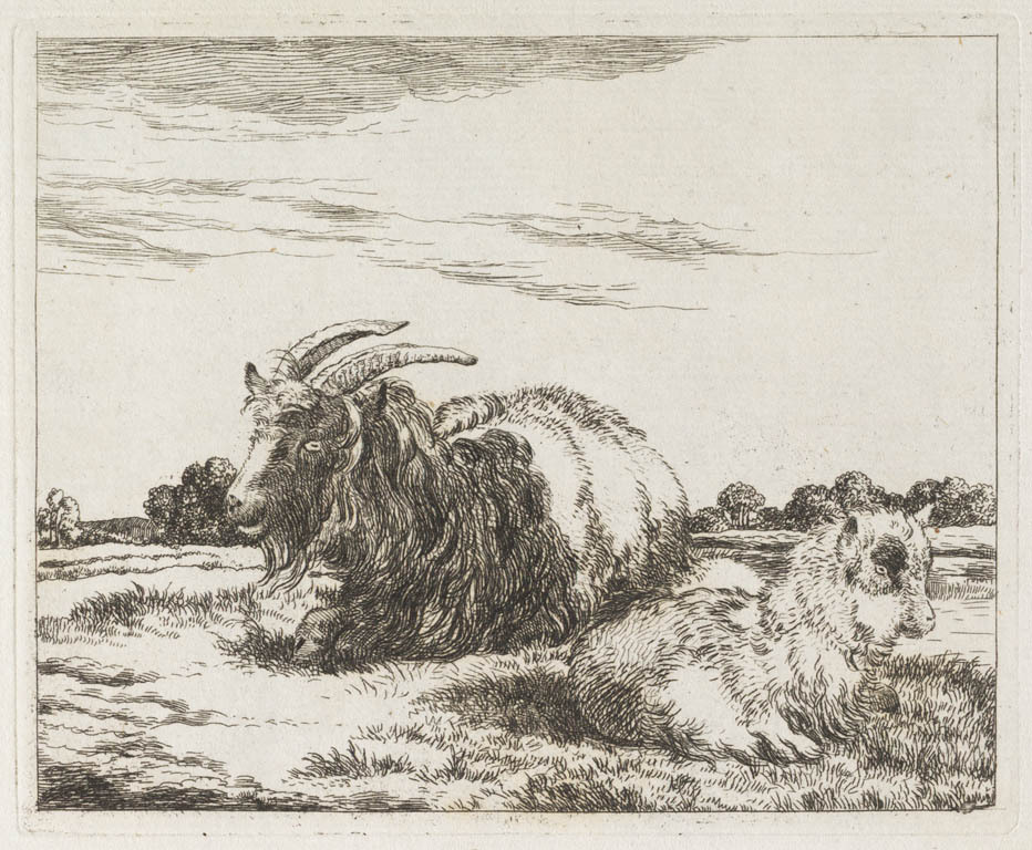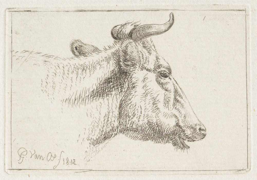 Kopstudie van schaap, ezel, paard, ram en koe.