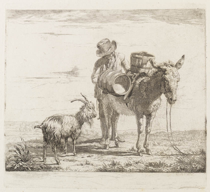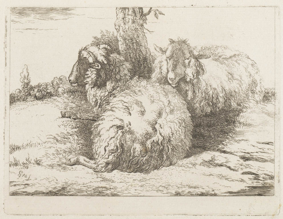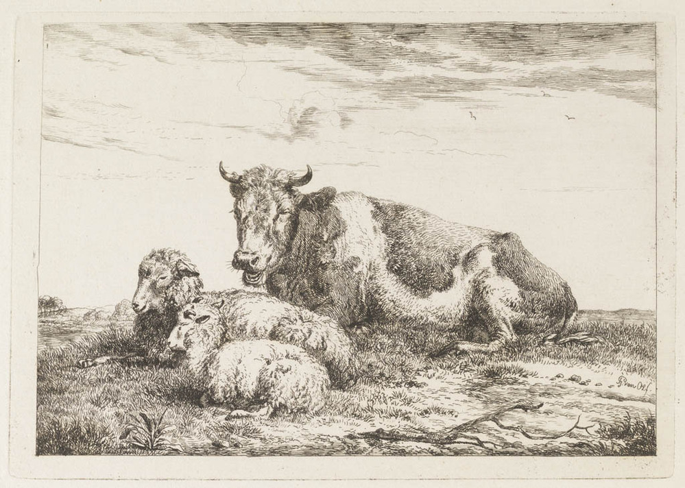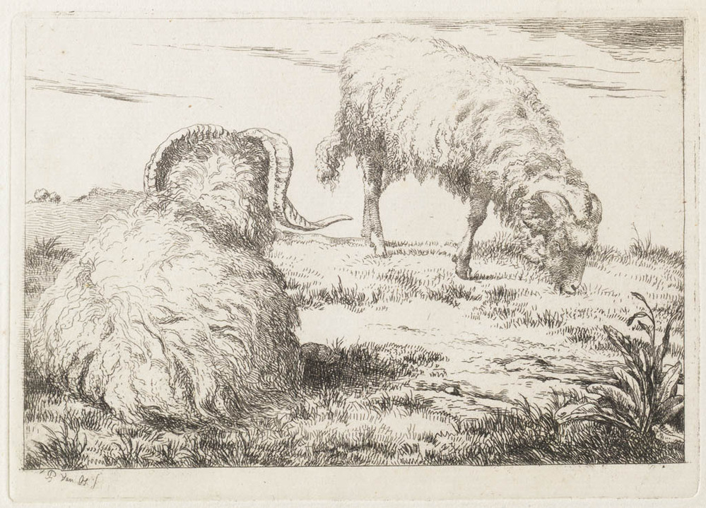 Kopstudie van schaap, ezel, paard, ram en koe.