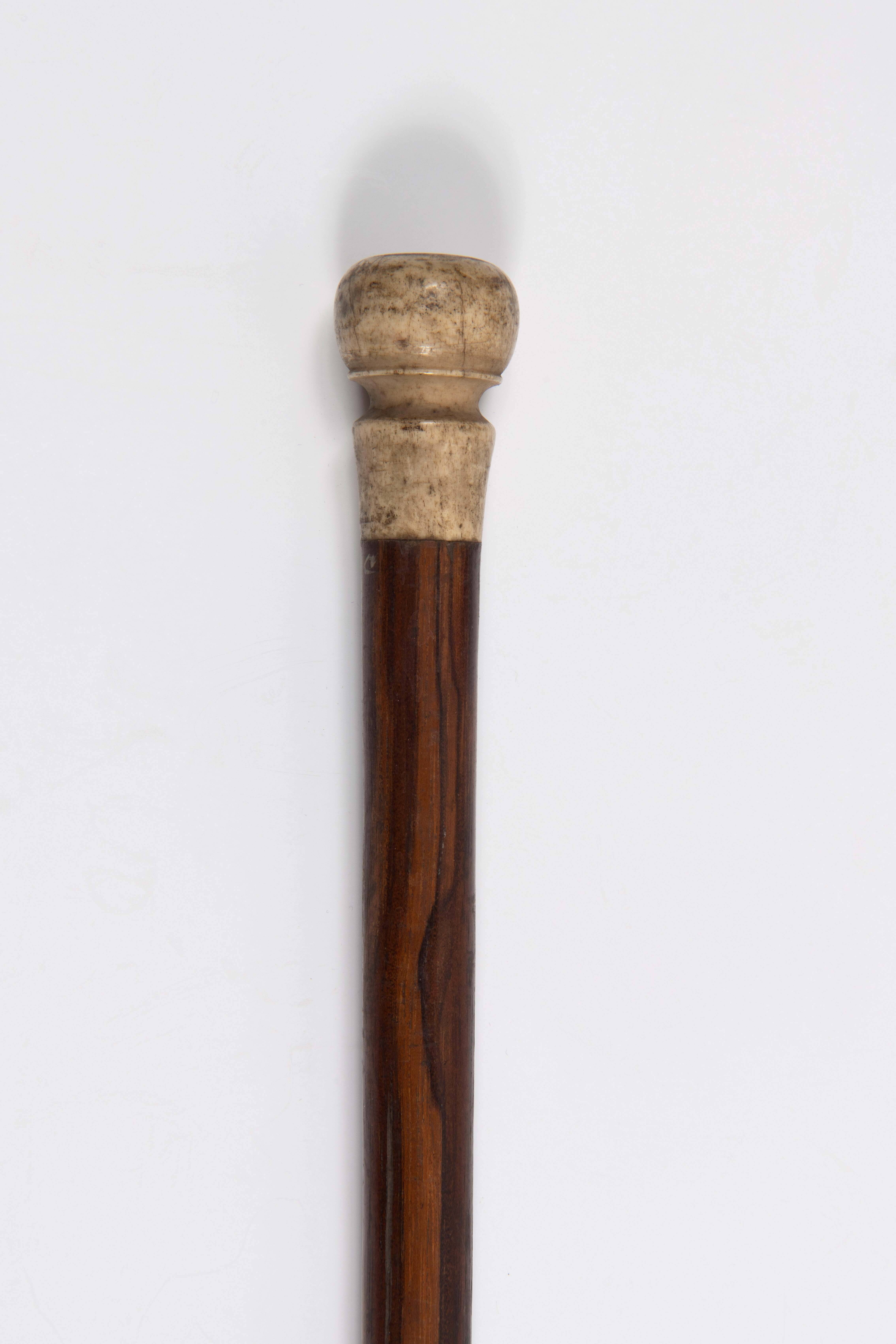 Houten wandelstok met wit benen handvat en puntbesch...