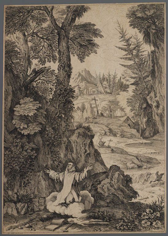 Hieronymus knielt voor het kruis (uit een serie van ...
