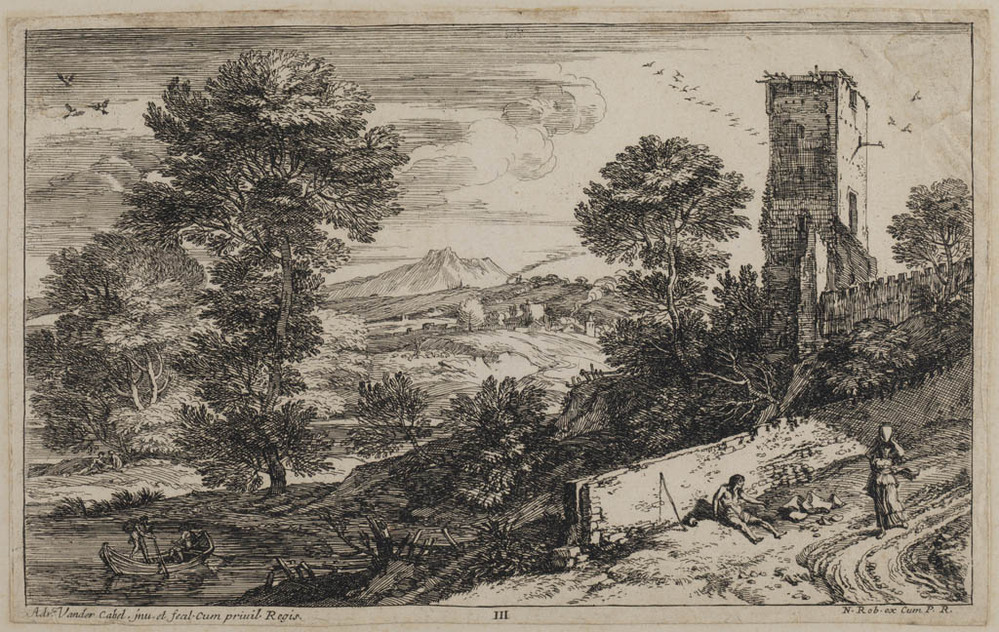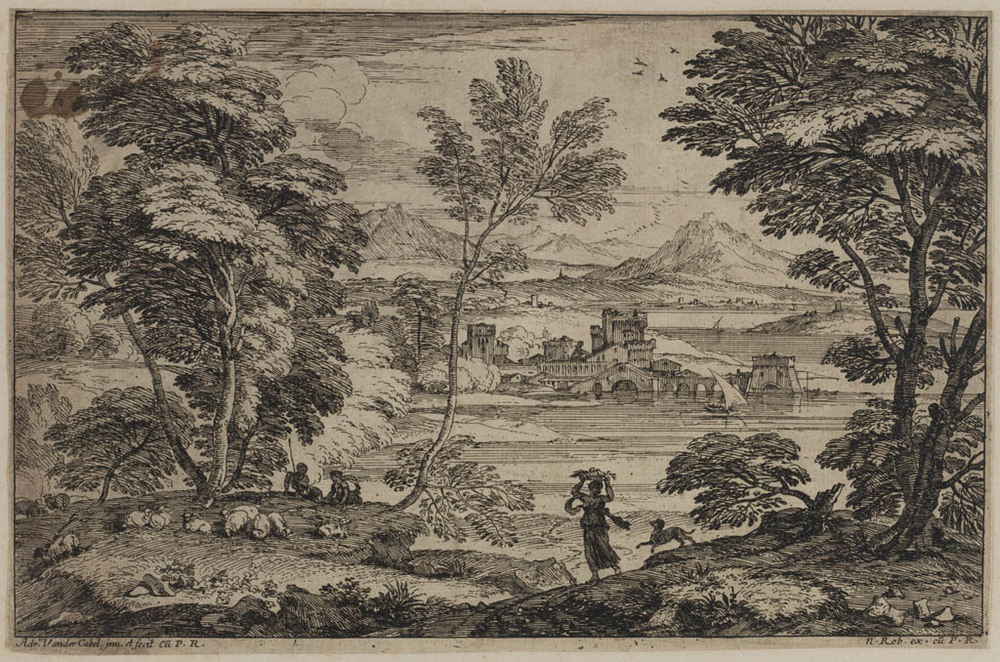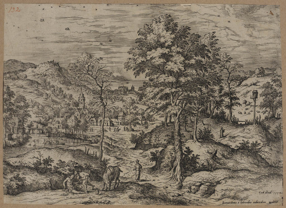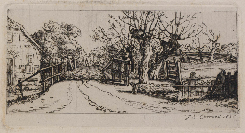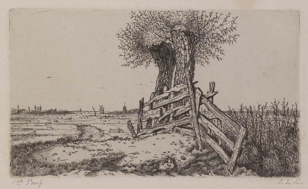Vergezicht bij een boom (uit een serie van 16 "lands...