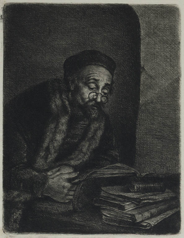 Lezende man met boeken op tafel (Rembrandtachtig)