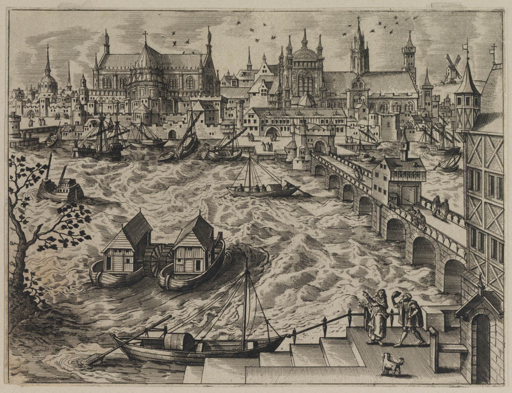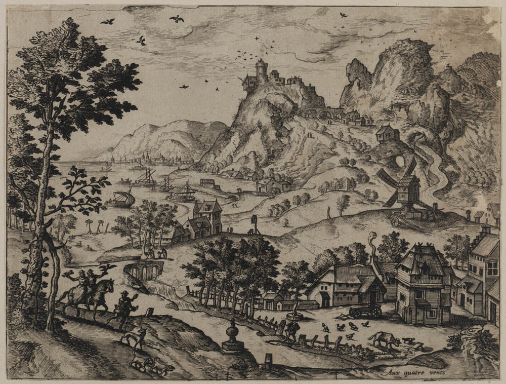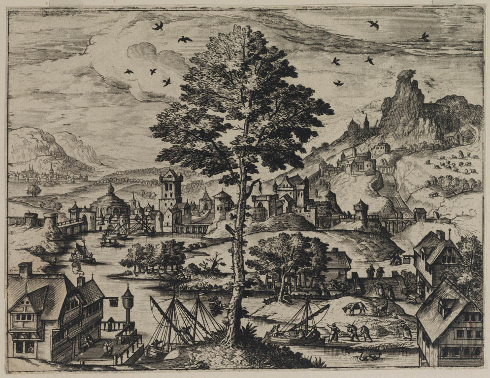 Stad aan de rivier (uit een serie van 16 "landschapp...