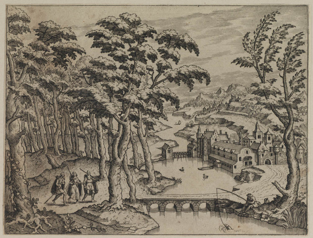 Kasteel in de rivier (uit een serie van 16 "landscha...