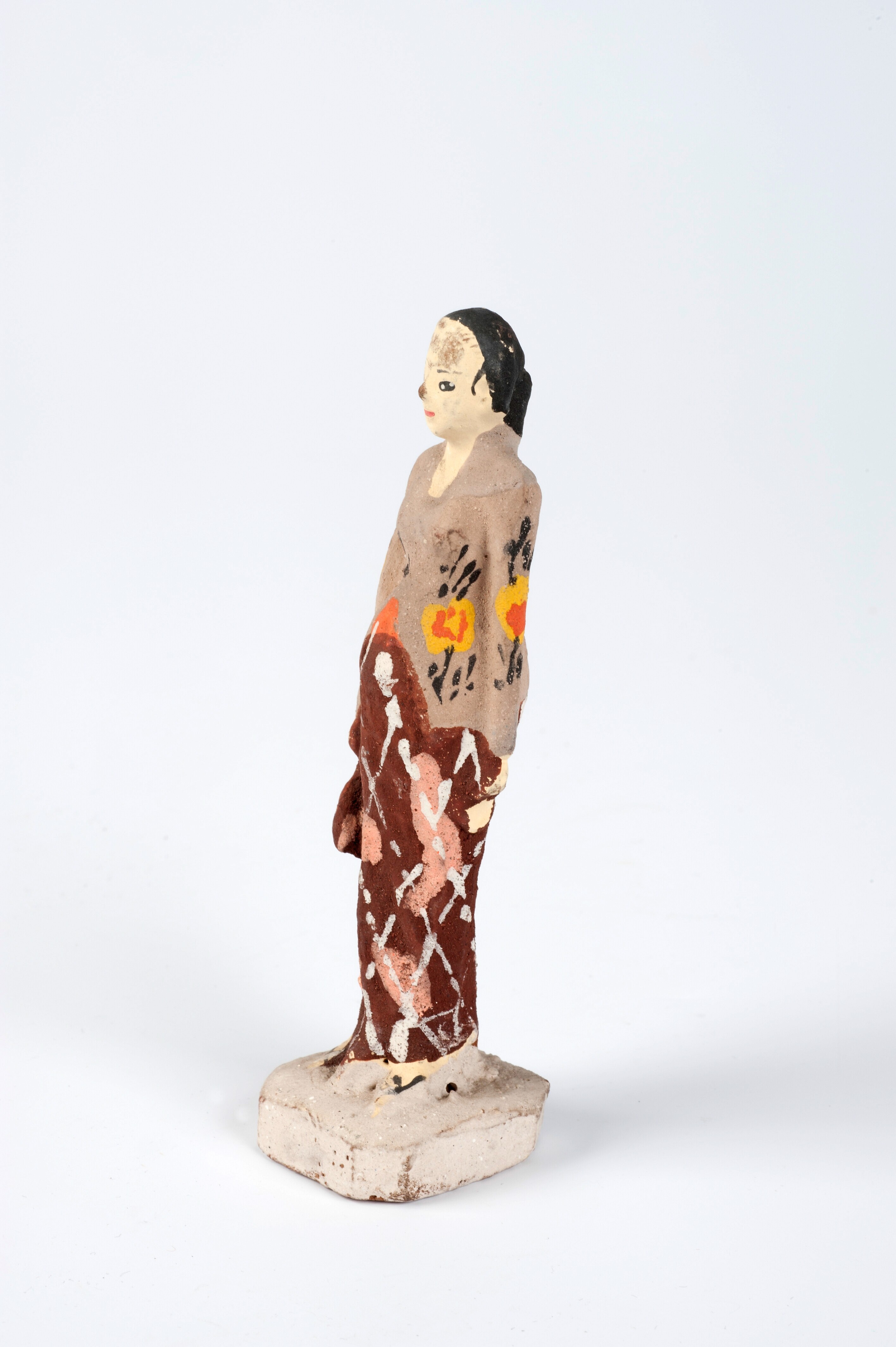 Beschilderd beeld van aardewerk in de vorm van een z...