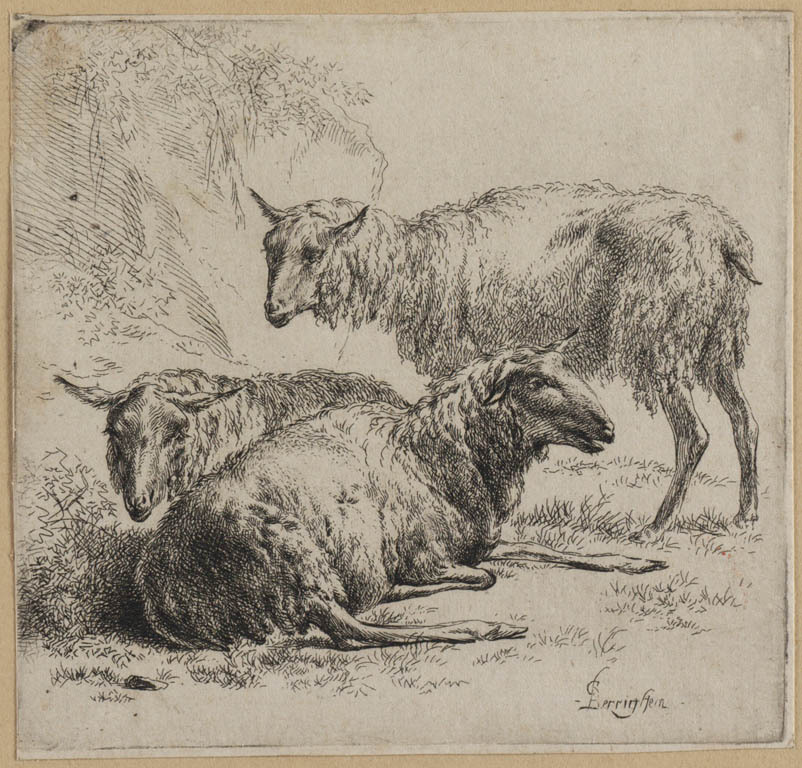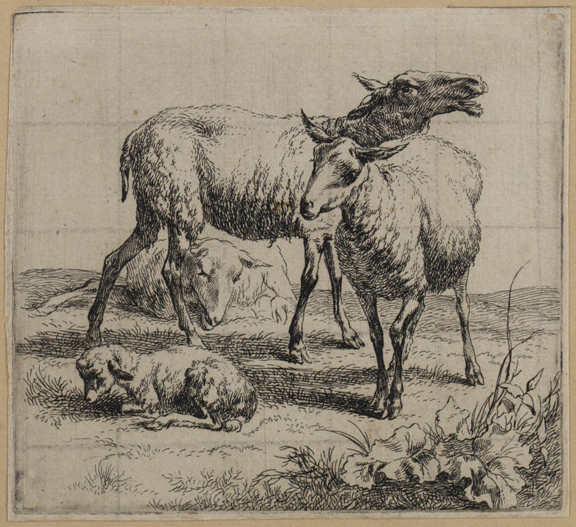 Drie schapen en een liggend lammetje