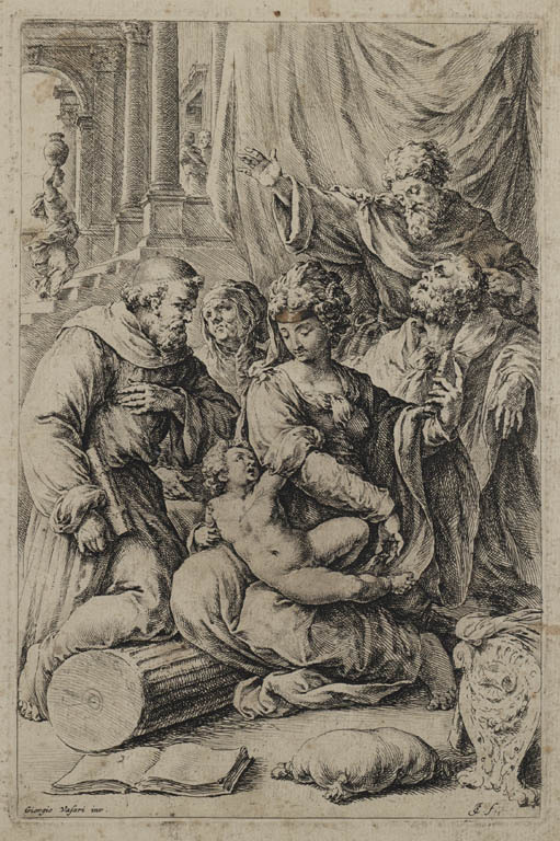 Heilige familie met andere heiligen en een kanunnik