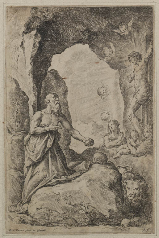 De heilige Hieronymus bij de gekruisigde Christus