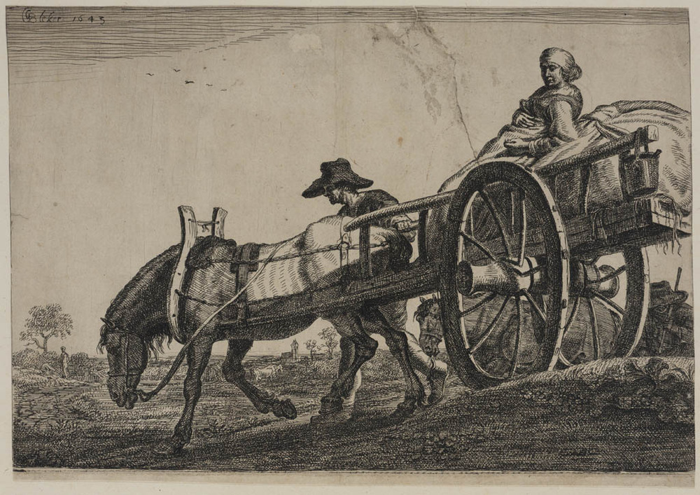 Boer en boerin met kar en paard