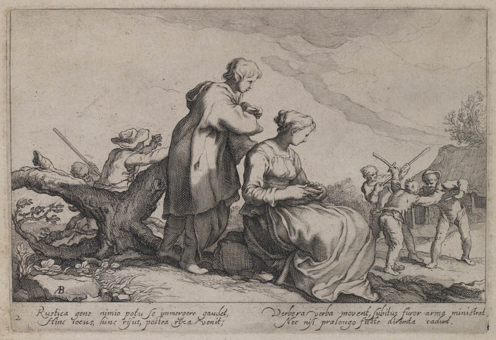Pastorale scene met gevecht tussen mannen