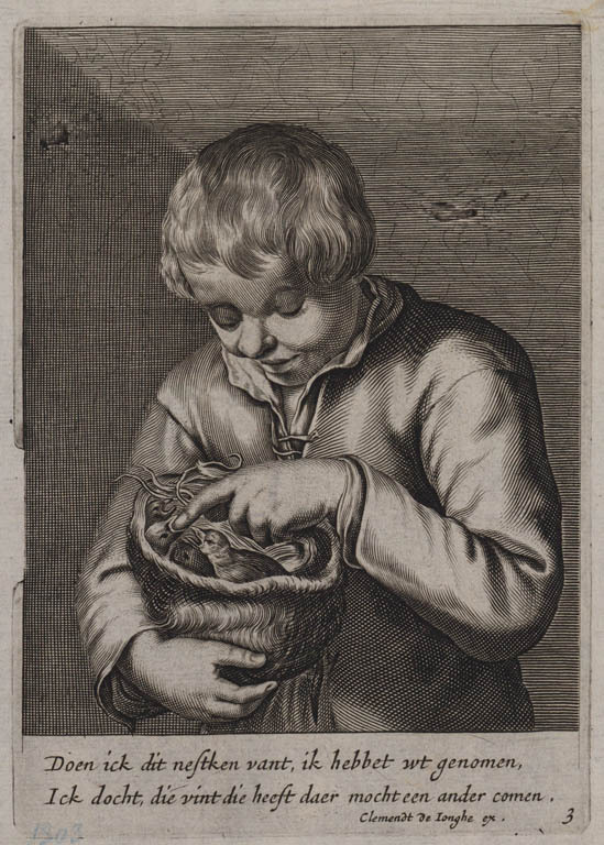 Jongen die een nestje vogels in zijn muts heeft