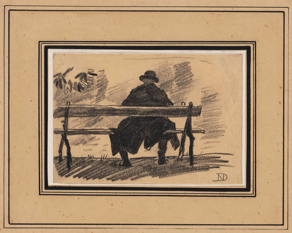 Mansfiguurtje op een bank