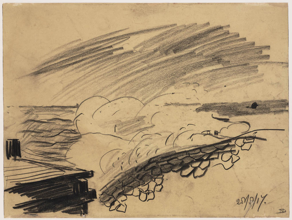 Golfslag op borstwering