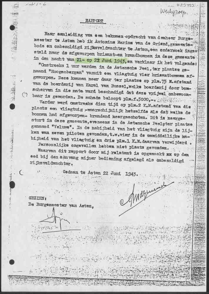 Rapport Gemeente Asten 21/22 juni 1943.