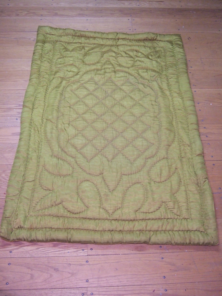 Matelassé deken van wit satijn, vermaakt van een rok...