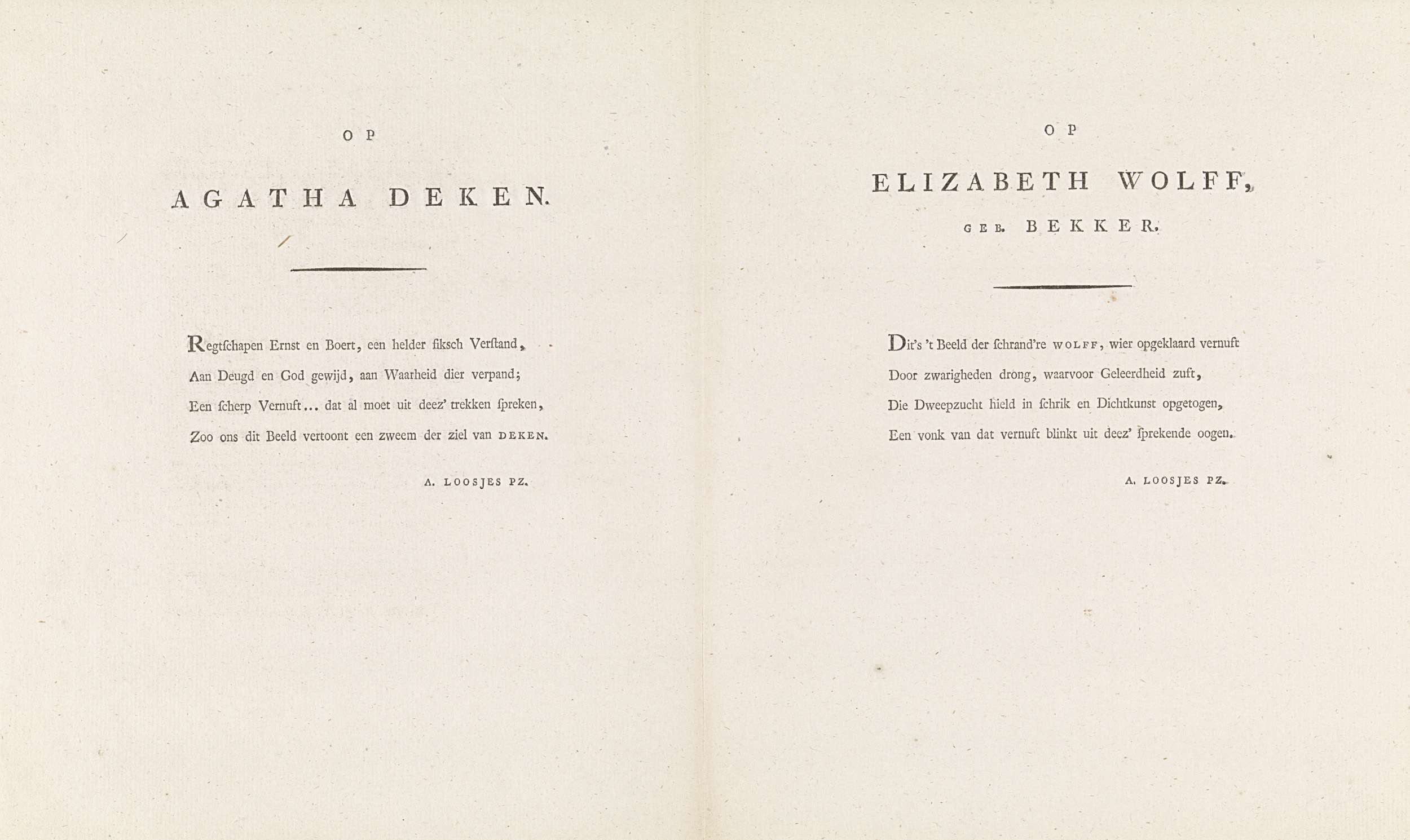 Omslag met twee gedichten op Agatha Deken en Elizabe...