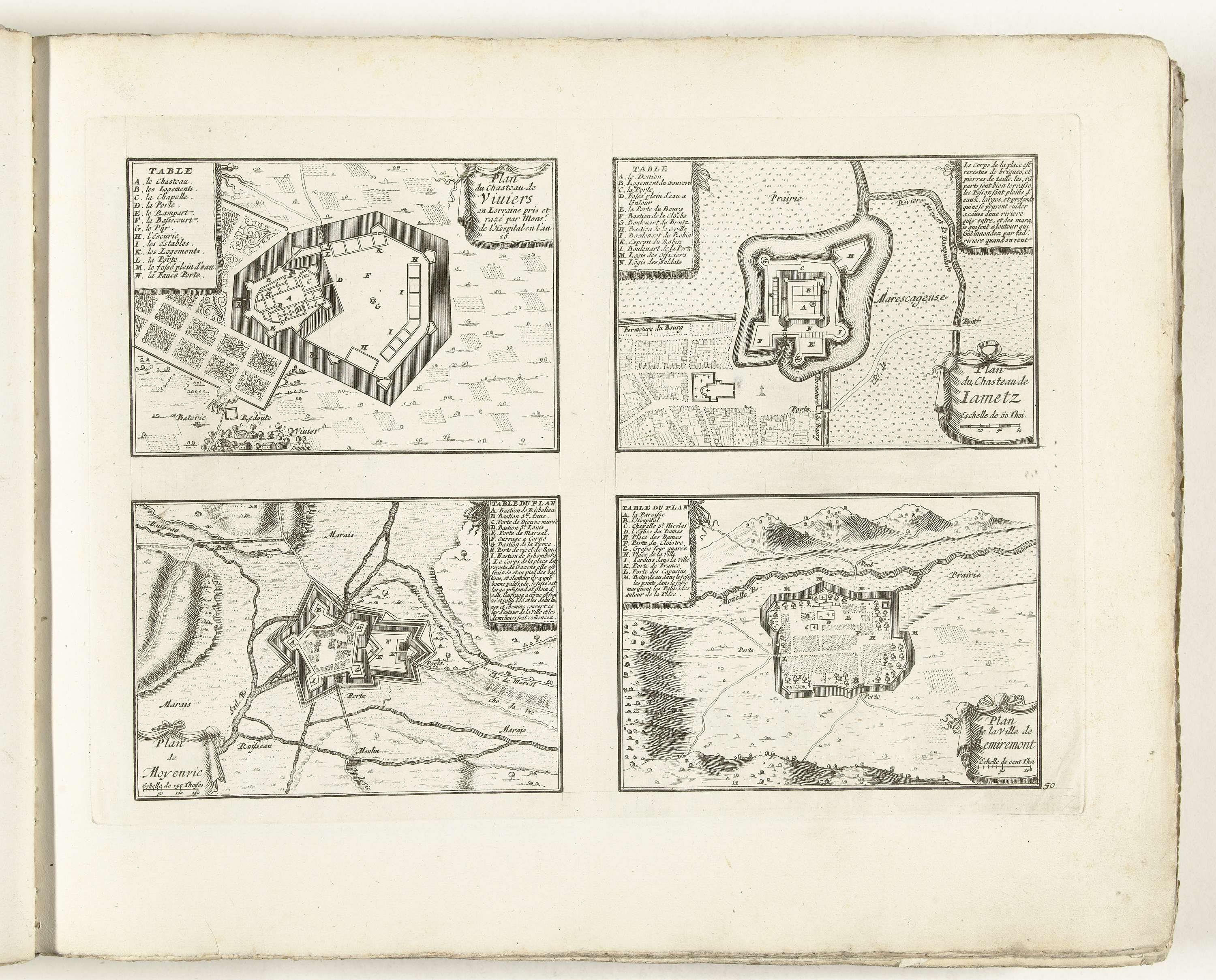 Plattegronden van Viviers, Jametz, Moyenvic en Remir...