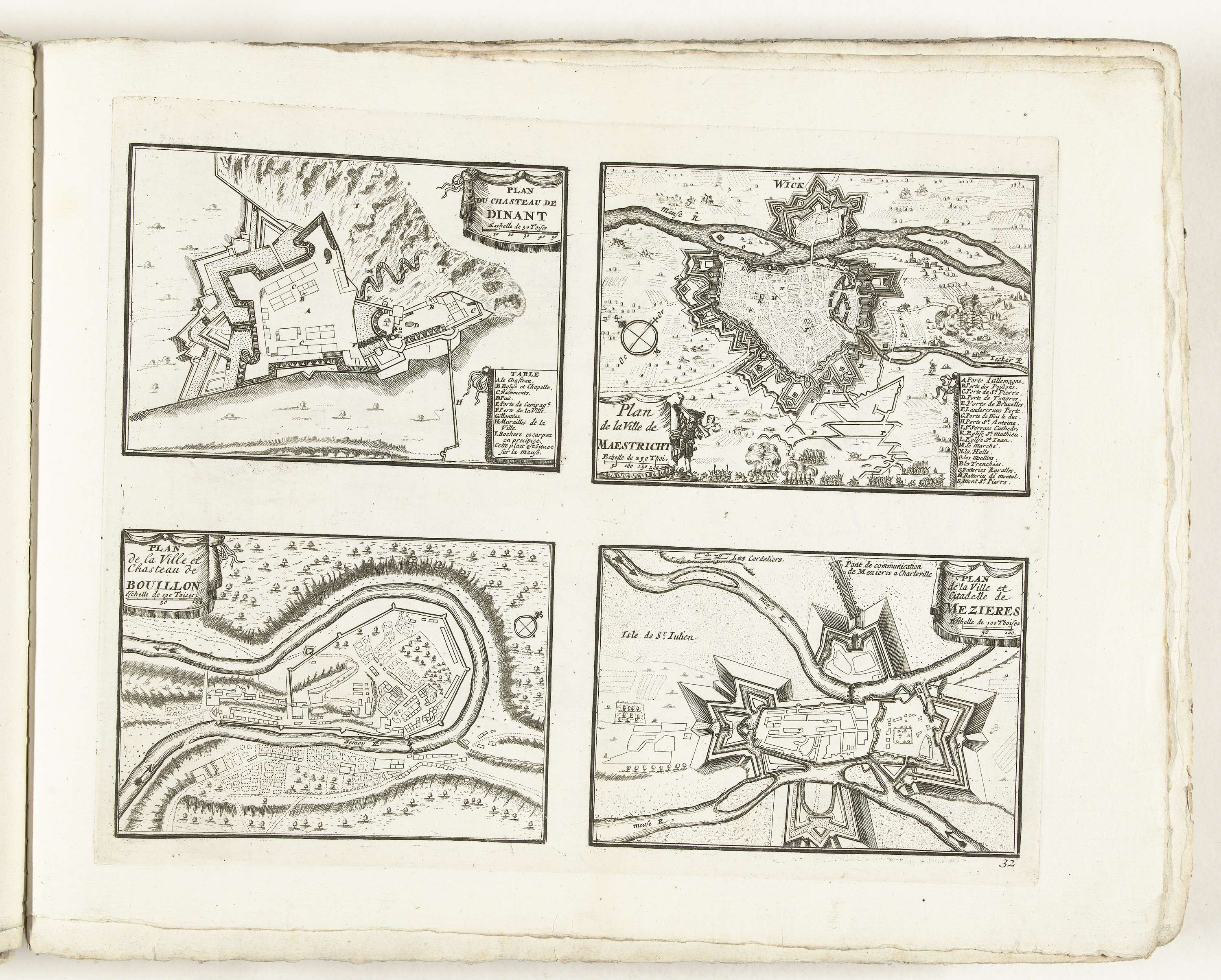 Plattegronden van Dinant, Maastricht, Bouillon en Mé...
