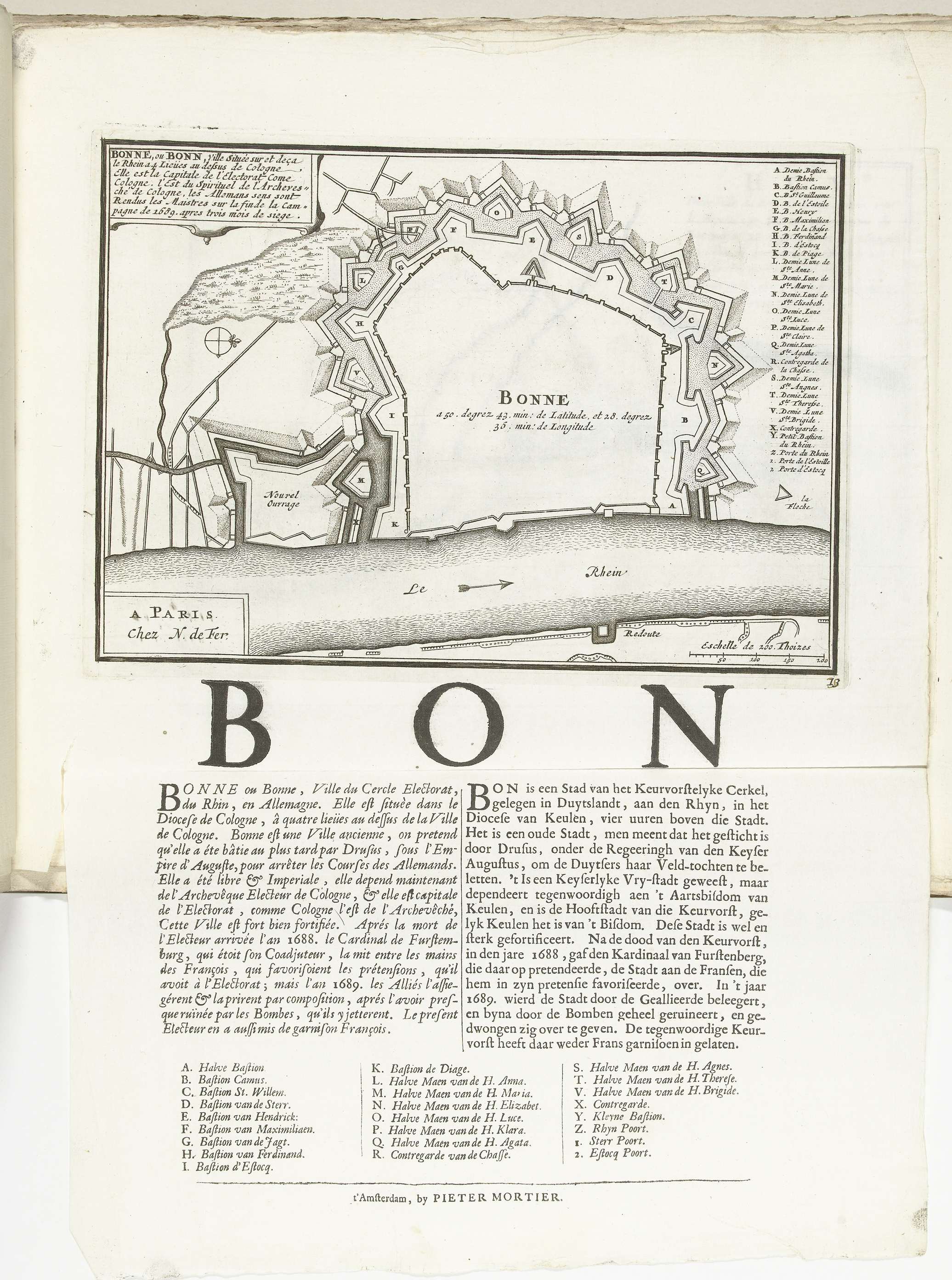 Plattegrond van Bonn, ca. 1702