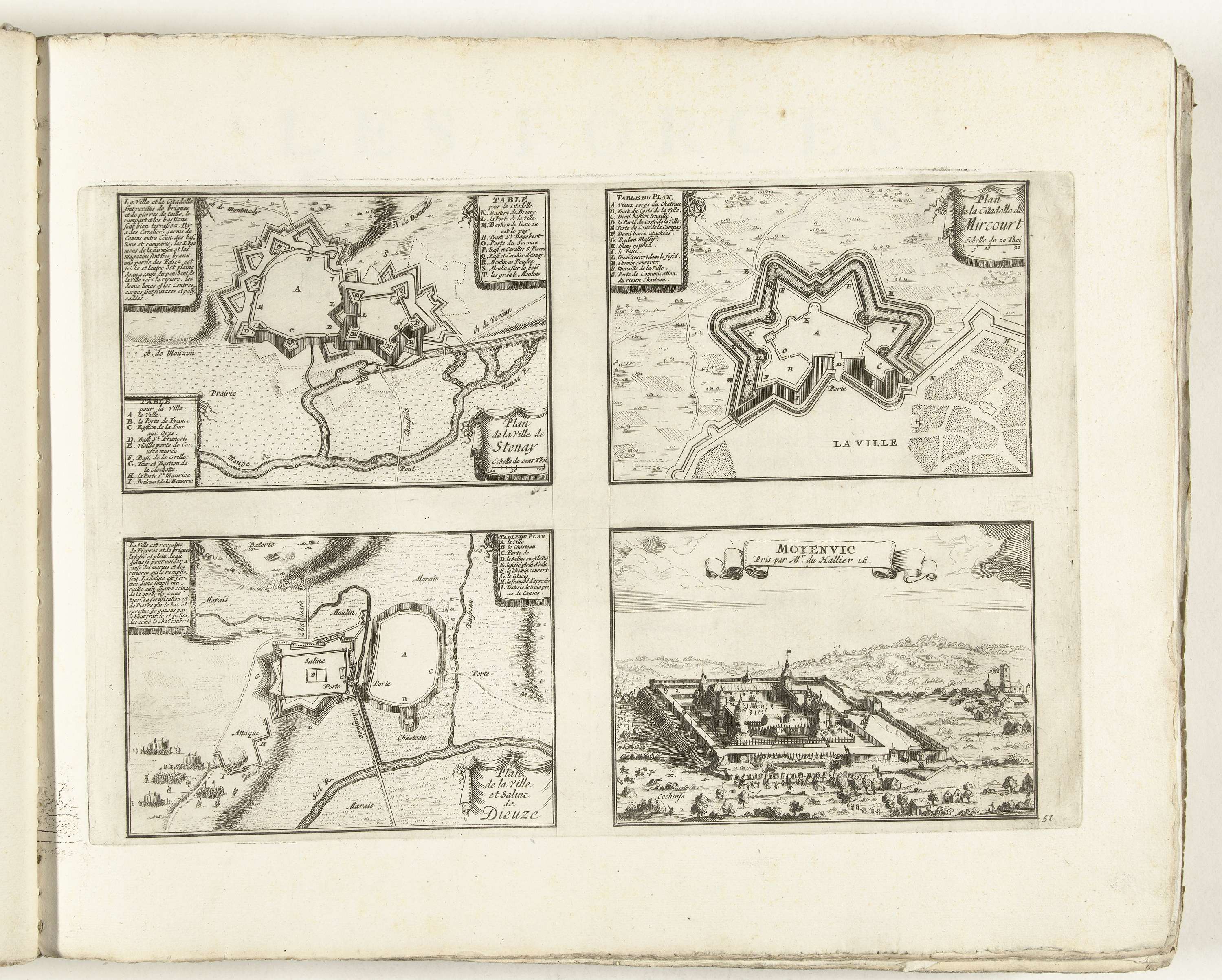 Plattegronden van Stenay, Mirecourt, Dieuze en Moyen...