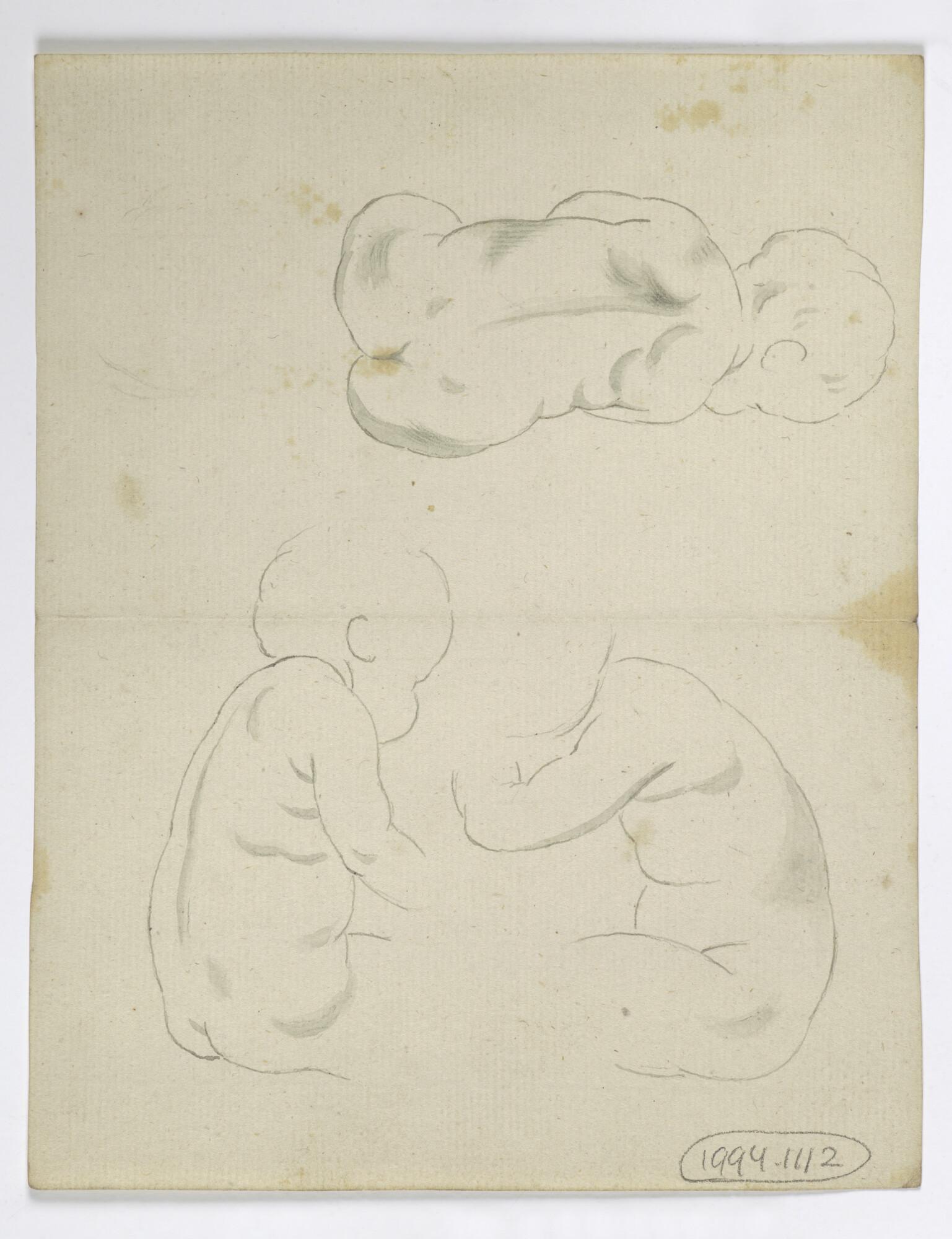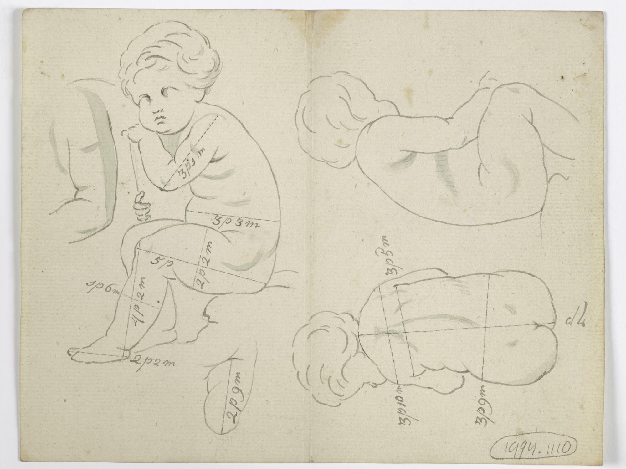 Schets van een zittend kinderfiguur