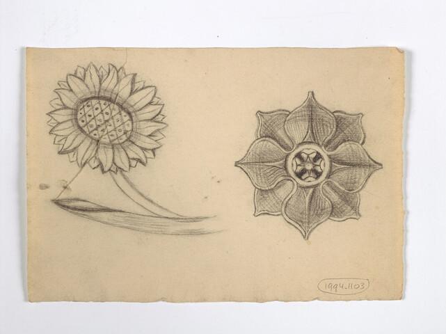 Tekening van twee bloemen, waaronder een zonnebloem