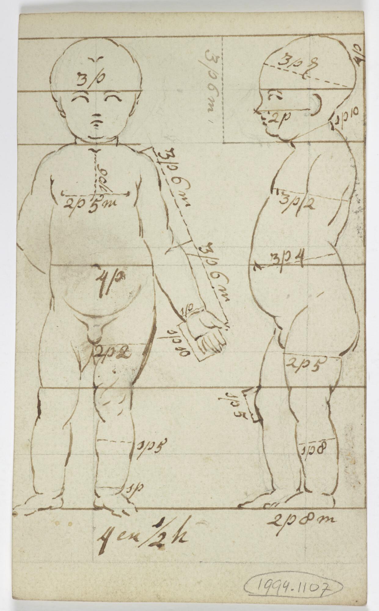 Tekening met maatvoering van kinderfiguur