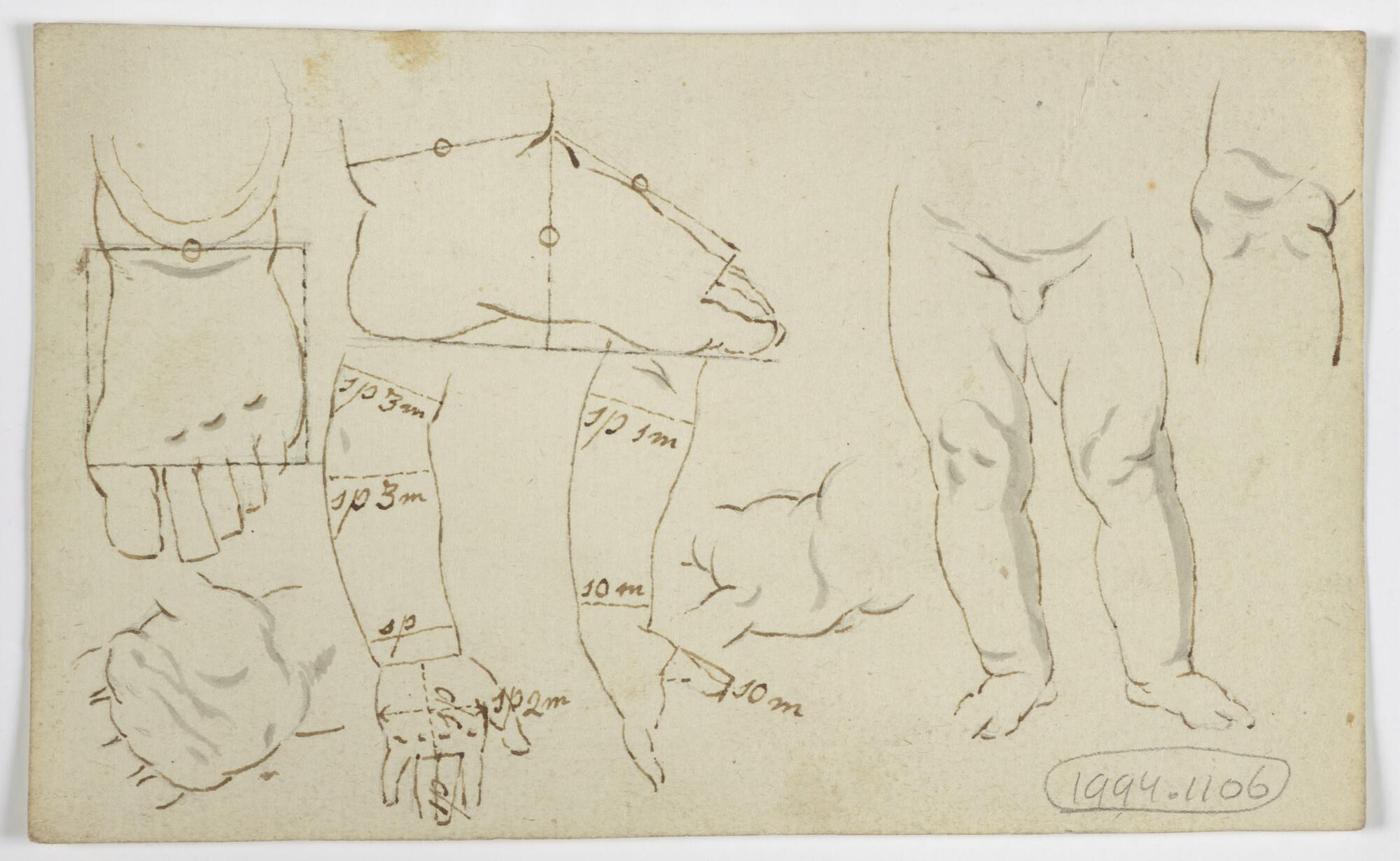 Tekening met maatvoering van diverse lichaamsdelen