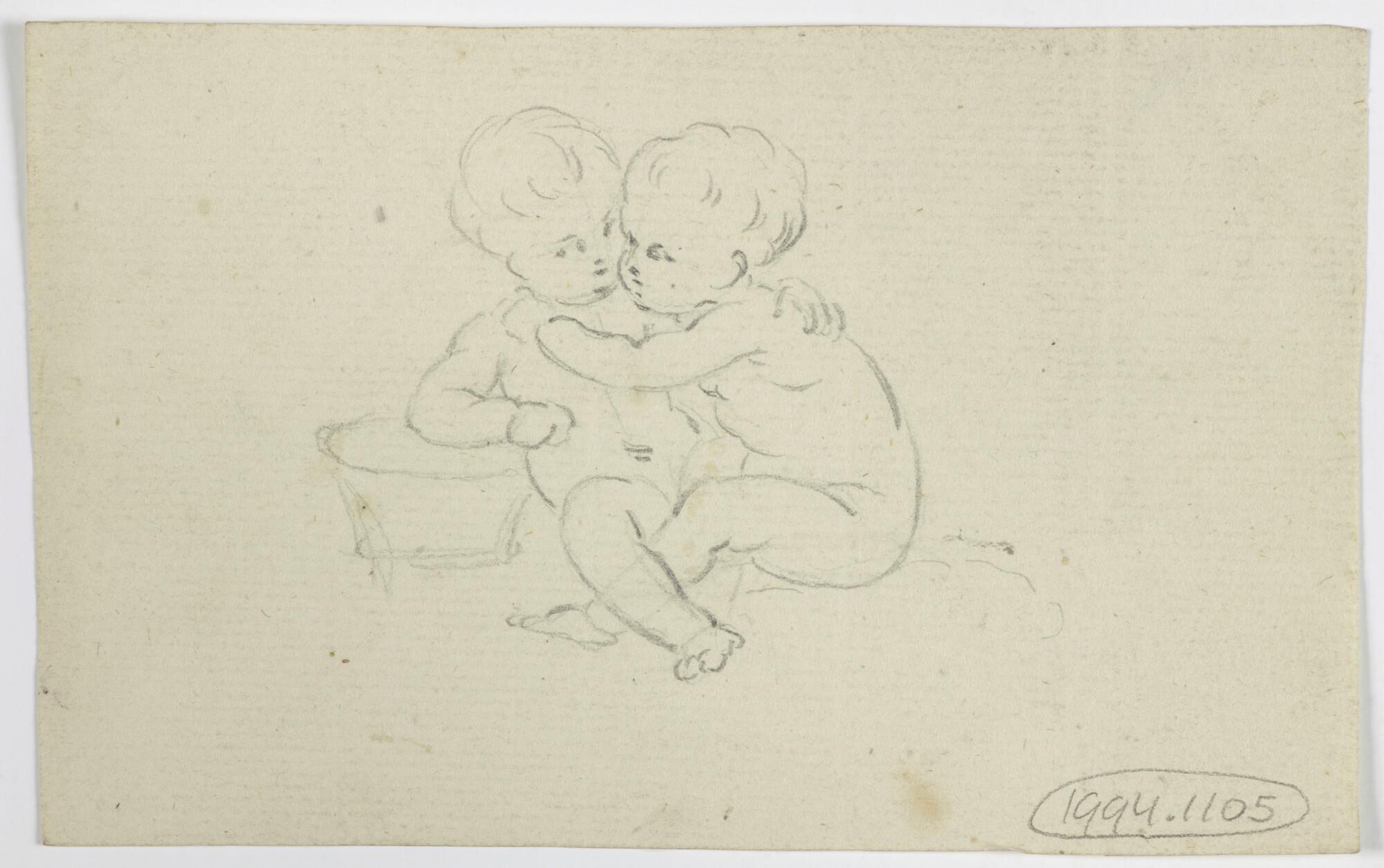 Schetsje van twee kinderfiguurtjes bij een teil