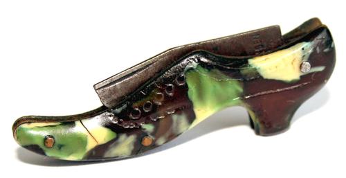 Mes. Zakmesje in de vorm van een schoen met grote hak.
