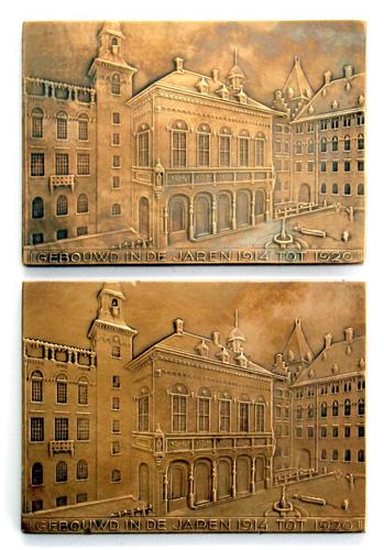 Bronzen herinnerings plaquettes, nieuwe Raadhuis Rot...