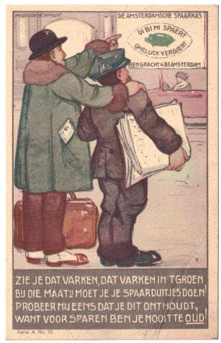 Briefkaart met afbeelding Amsterdamsche Spaarkas,