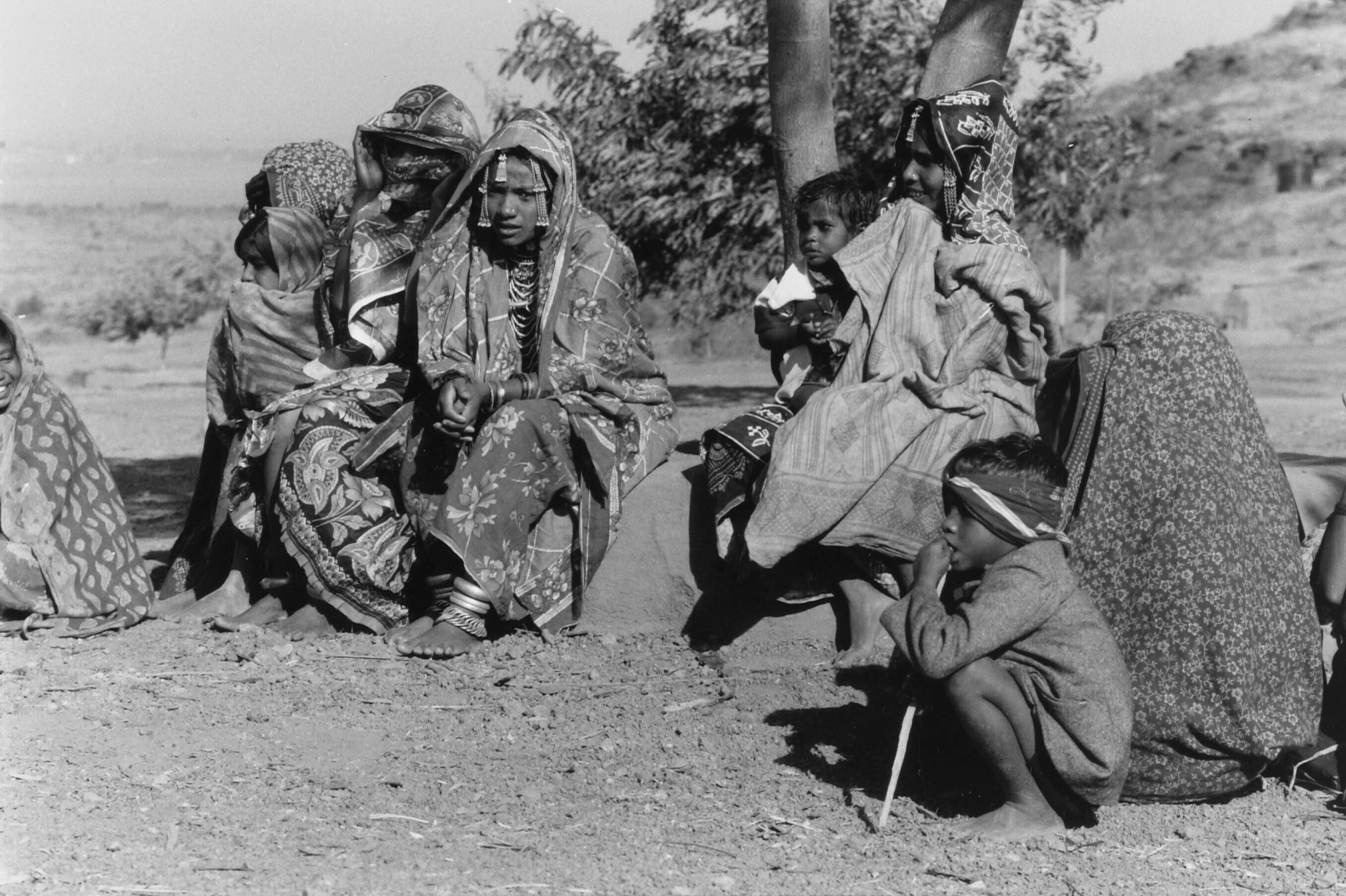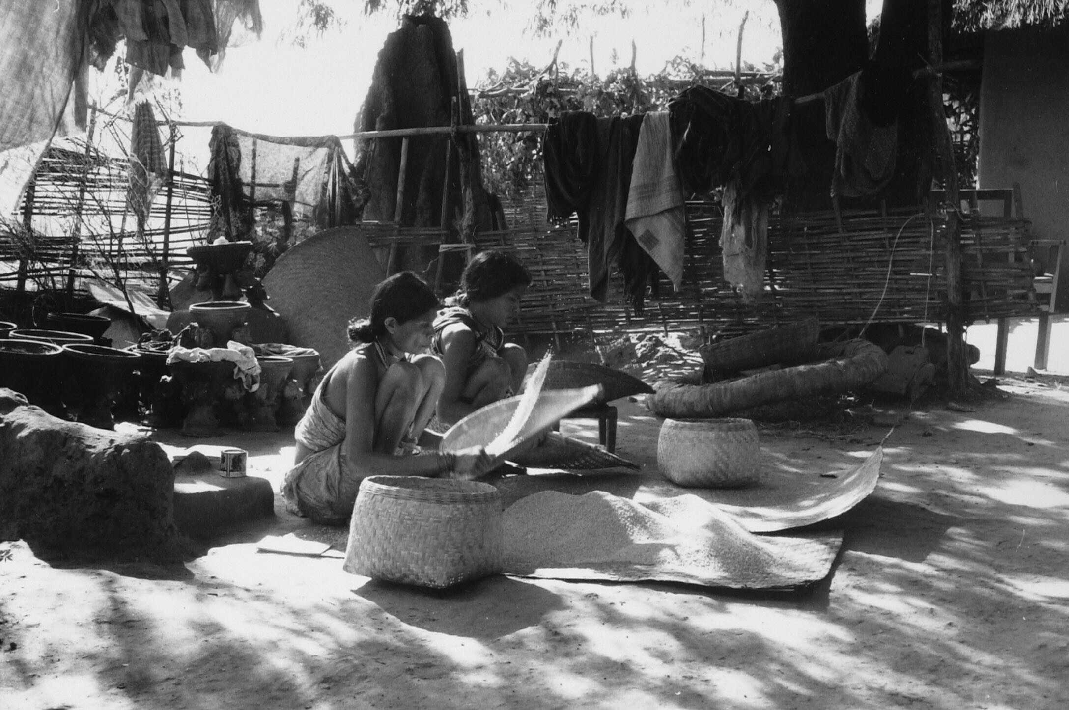 Dorpsmeisjes op de markt in een dorp in het Wharli g...