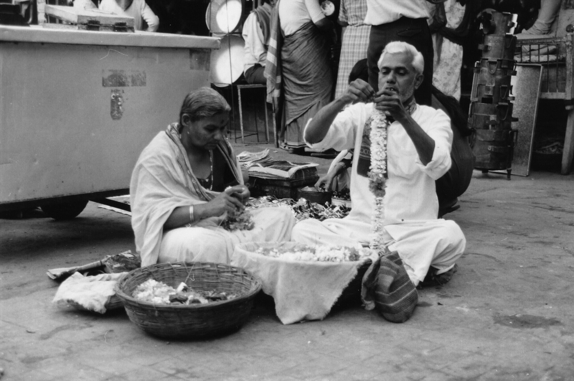 Sirihverkoper op het trottoir van de Nariman road