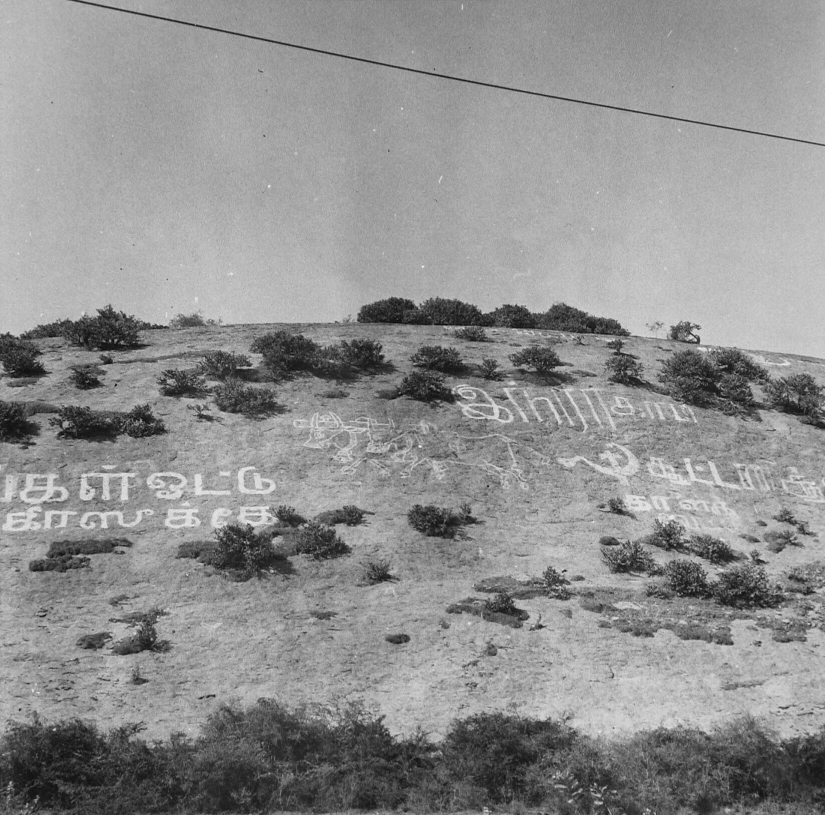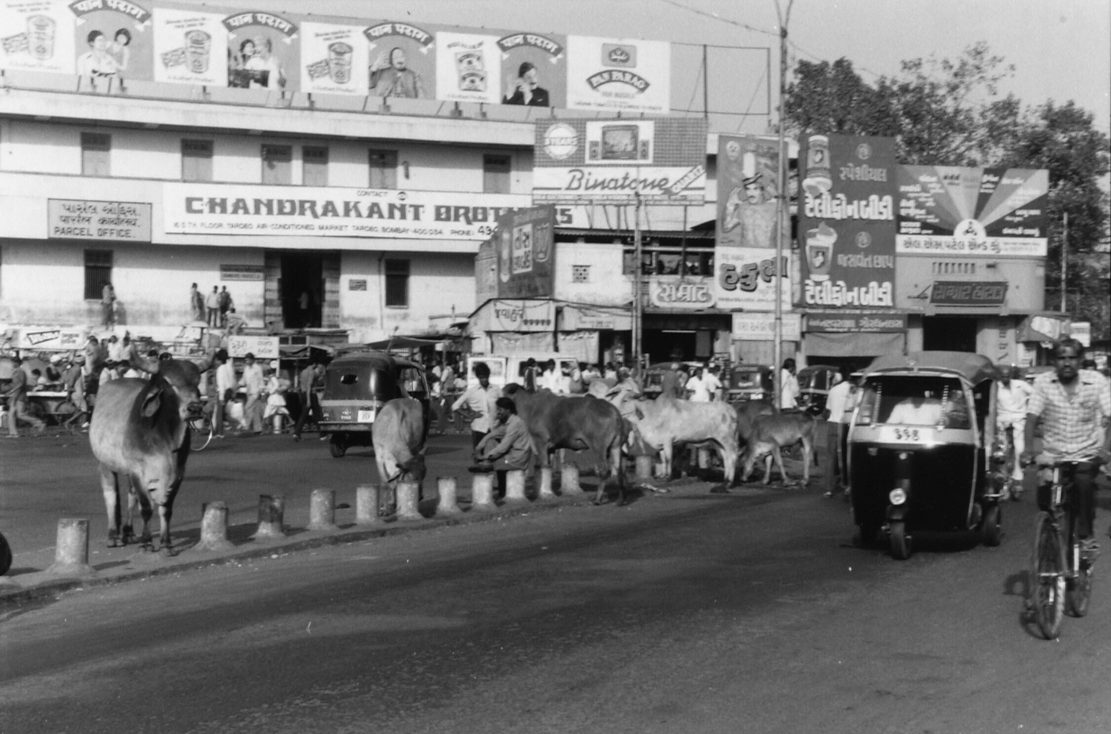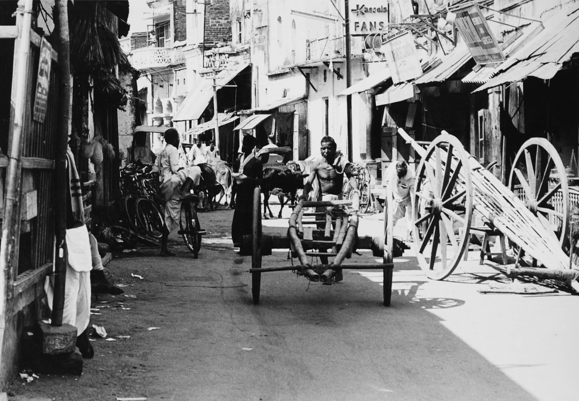 Straatbeeld in Hyderabad met links op de voorgrond e...