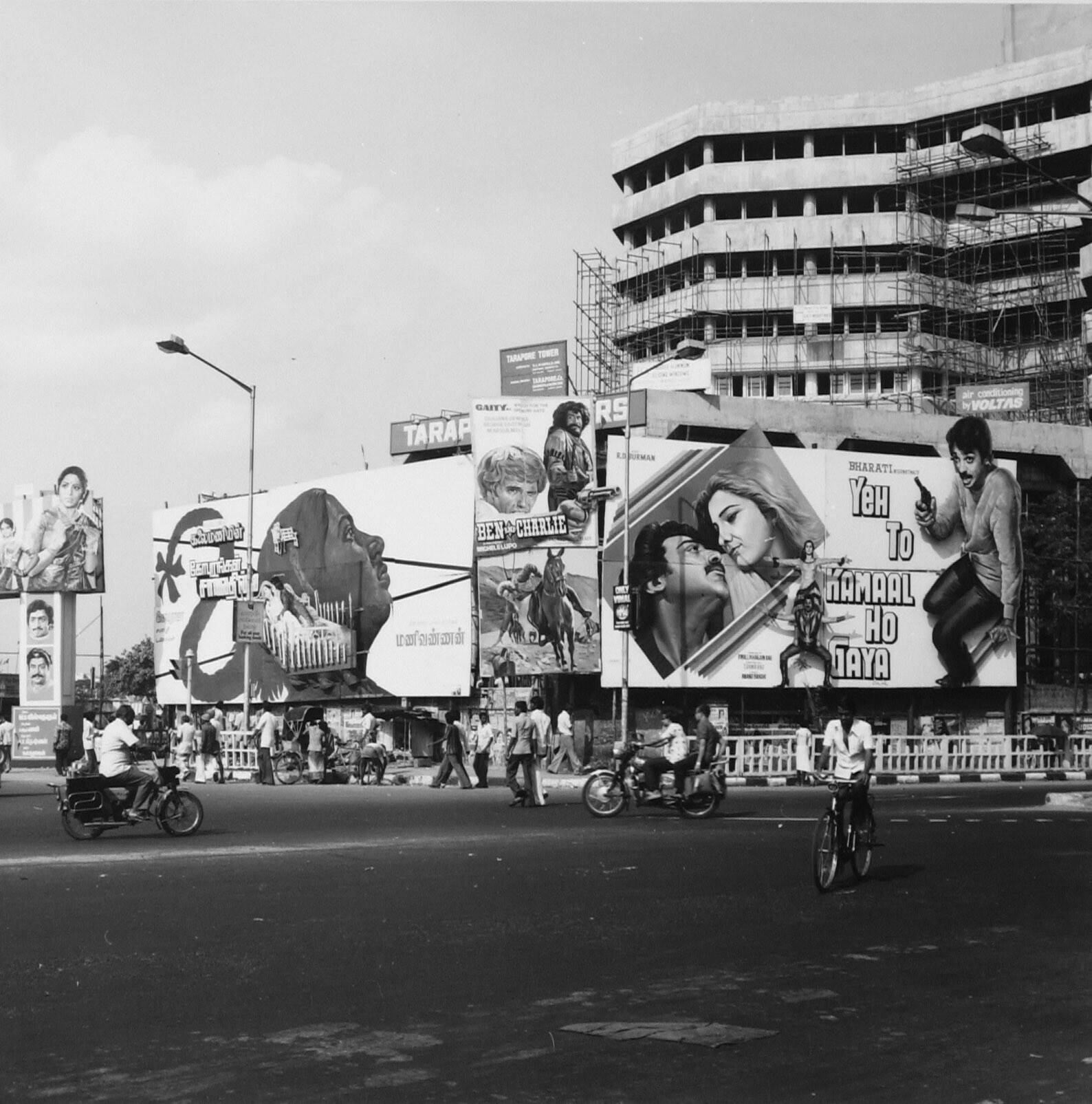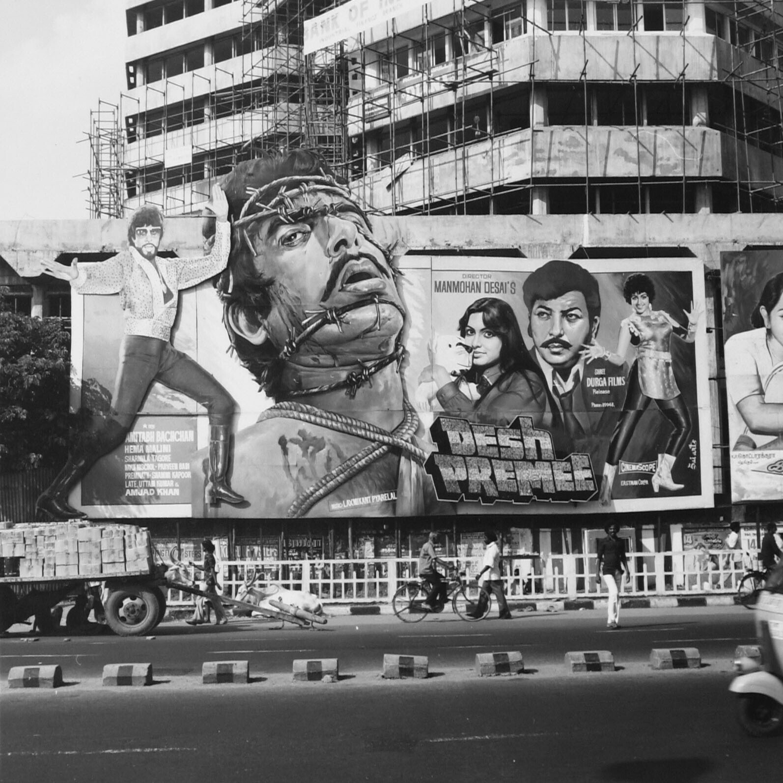 Straatbeeld met enorme bioscoopreclameborden