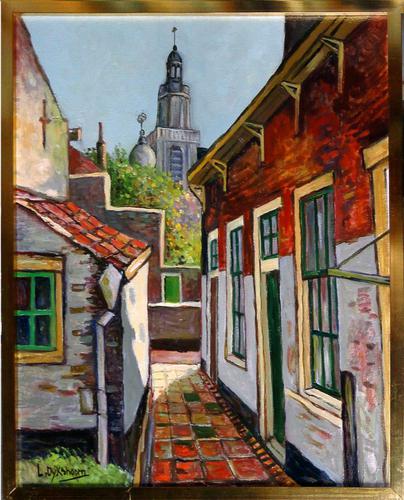 Olieverf op doek, Steeg achter De Waal, Vlaardingen.
