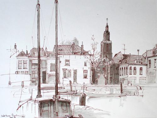 Gewassen pentekening. Delflandse Sluis Vlaardingen.