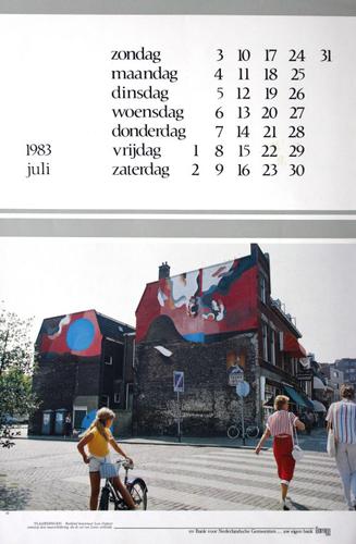 Drukwerk. Muurschildering hoek Hoogstraat, Korte Hoo...