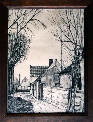 Gewassen pentekening. Boerderij Jan Anderson aan de ...