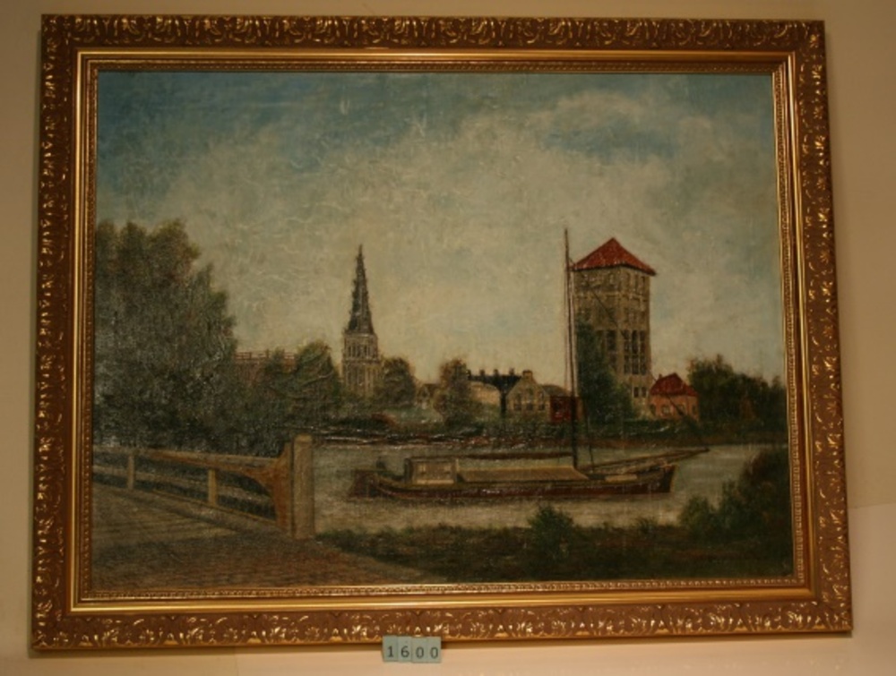 Gezicht op Doesburg met toren en watertoren