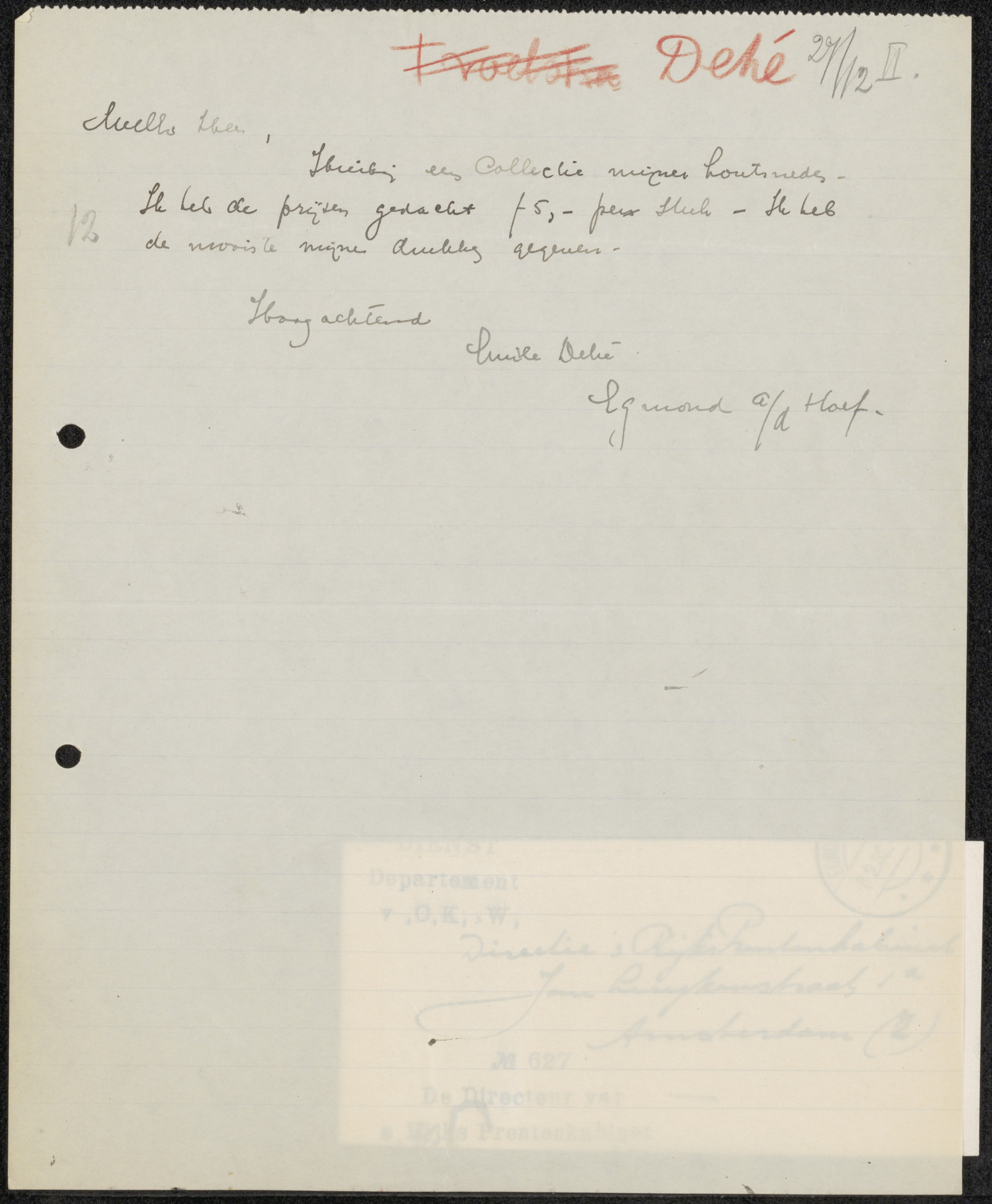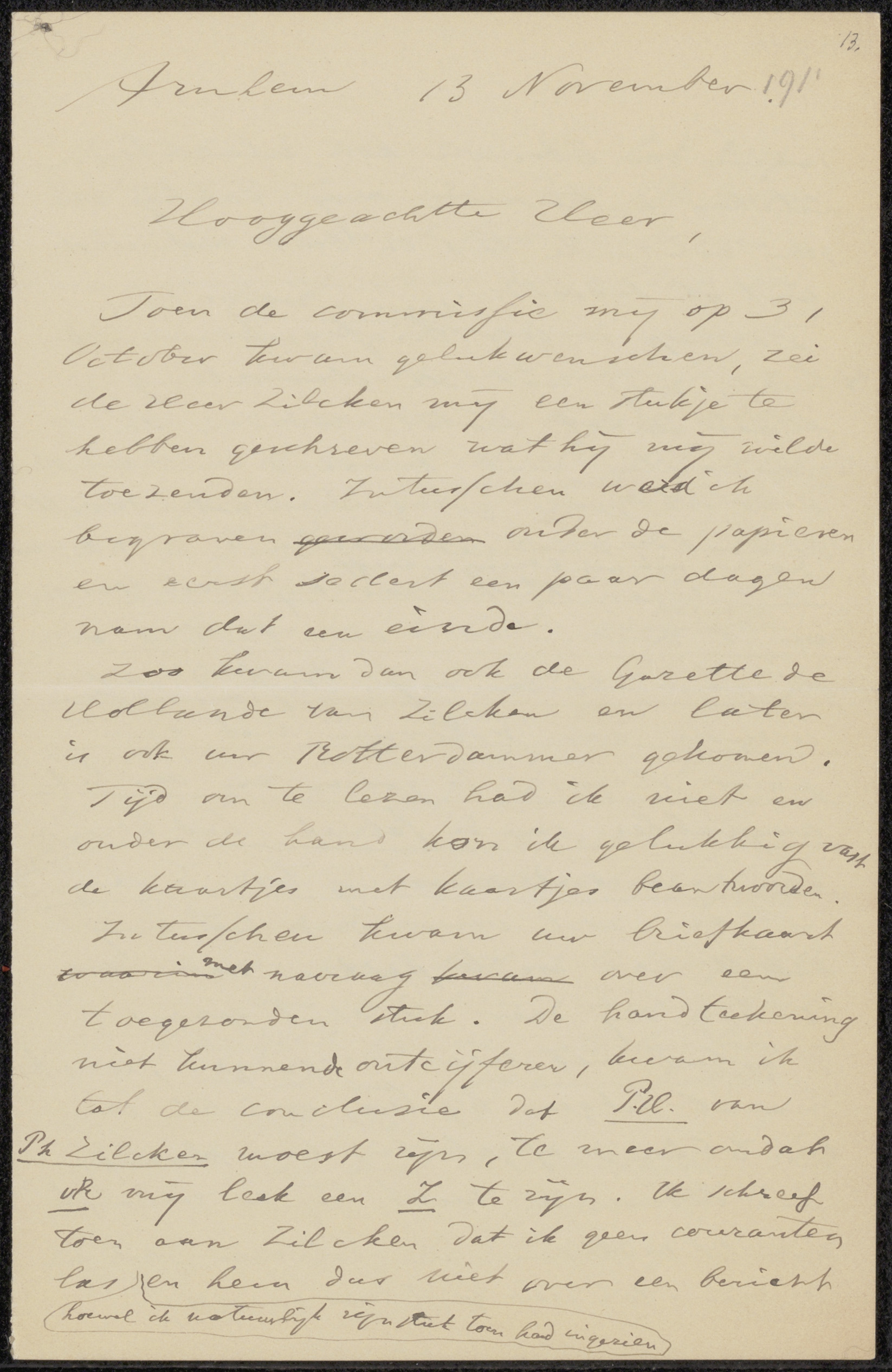 Brief aan jonkheer Hendrik Teding van Berkhout (1879...