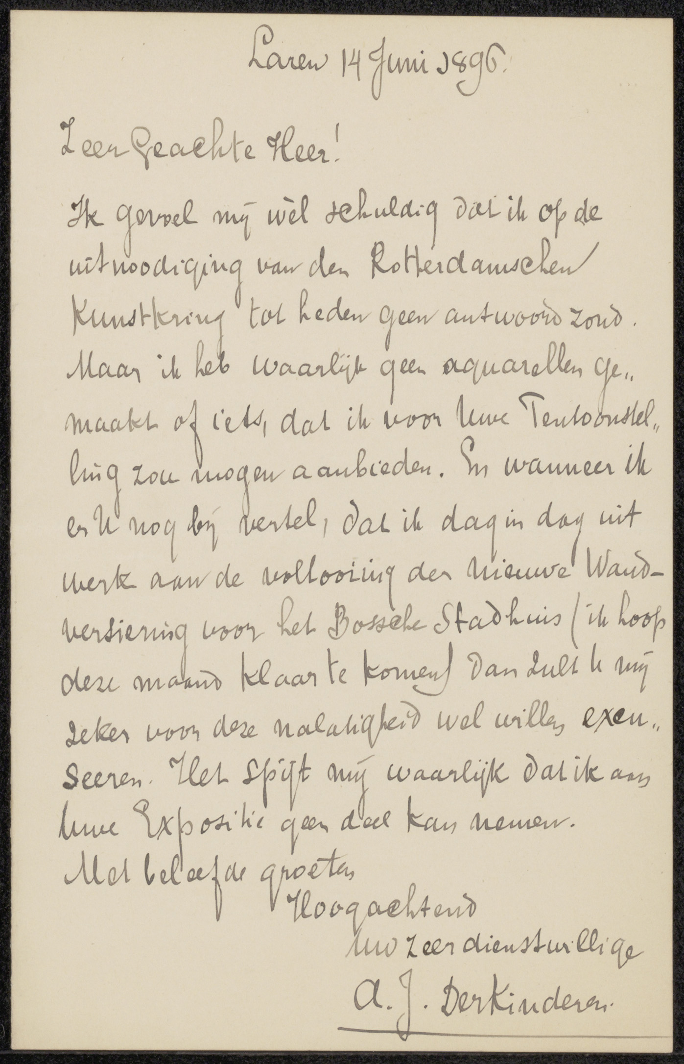 Brief aan de Commissie van de Tentoonstelling van Le...
